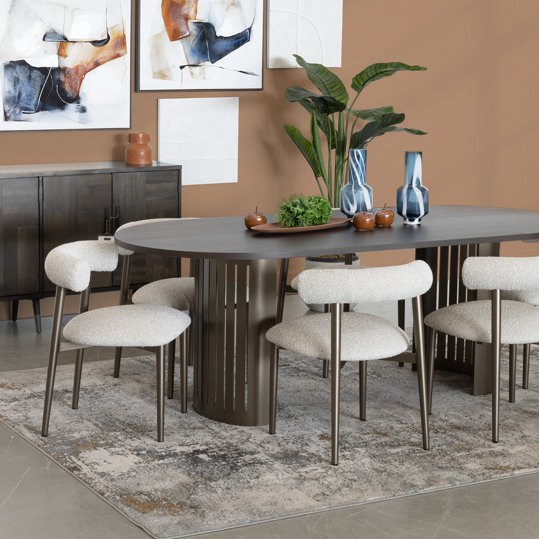 Dès les premiers instants, ce décor se distingue par son alliance audacieuse entre teintes profondes et matières naturelles. L'introduction de la couleur poivre noir, à la frontière du brun et du noir, apporte une sophistication inattendue. C'est une interprétation moderne du minimalisme chaleureux, où chaque pièce apporte des textures riches, des lignes courbes et un confort réfléchi. Rien n'est laissé au hasard, tout respire la cohérence et le souci du détail.