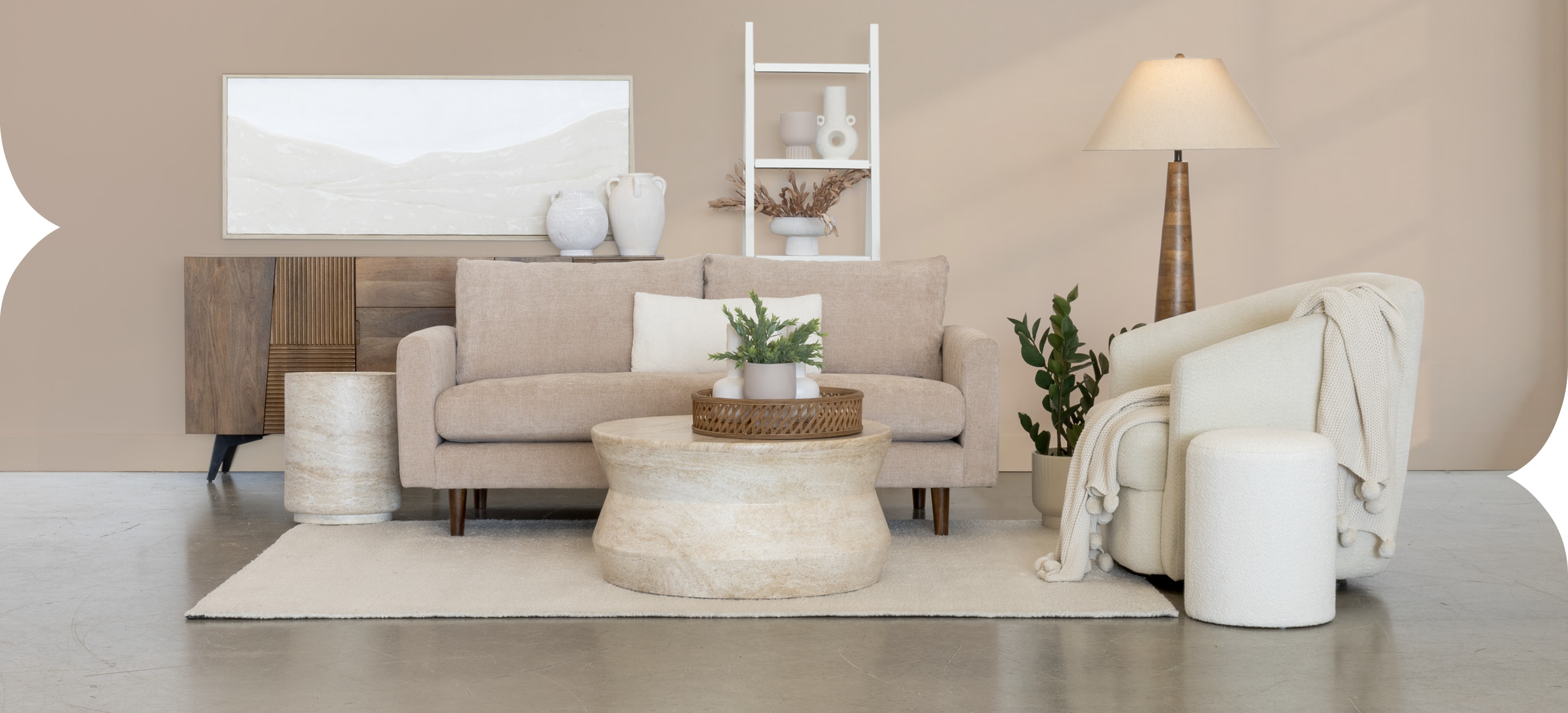 Plonger dans un décor où le beige se décline en nuances subtiles, c’est choisir une atmosphère à la fois chaleureuse et intemporelle. La tendance Lumineux et doux beiges mise sur des matières naturelles, des lignes épurées et un équilibre parfait entre textures et teintes. Chaque élément de ce salon a été soigneusement sélectionné pour offrir un espace à la fois accueillant et raffiné, où la lumière joue un rôle clé.