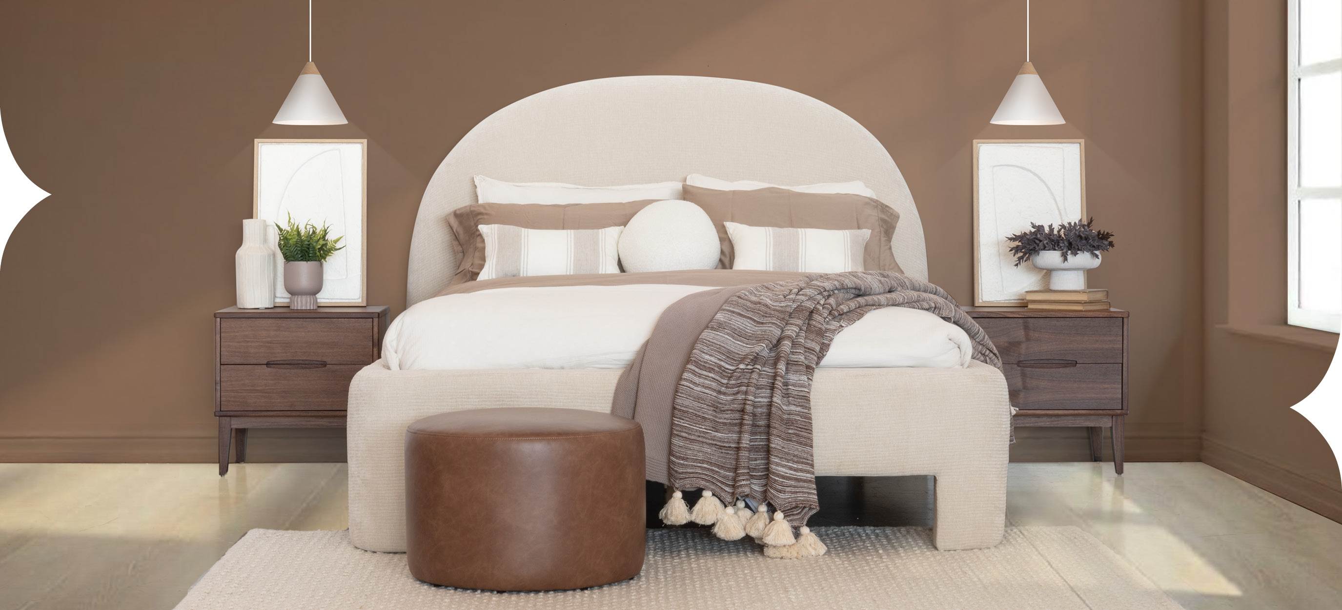 Oubliez les intérieurs fades et sans relief. La tendance Mocha Mousse prouve que les couleurs plus sombres et les formes douces ont toute leur place dans une chambre à coucher afin de créer un environnement parfait pour le sommeil.