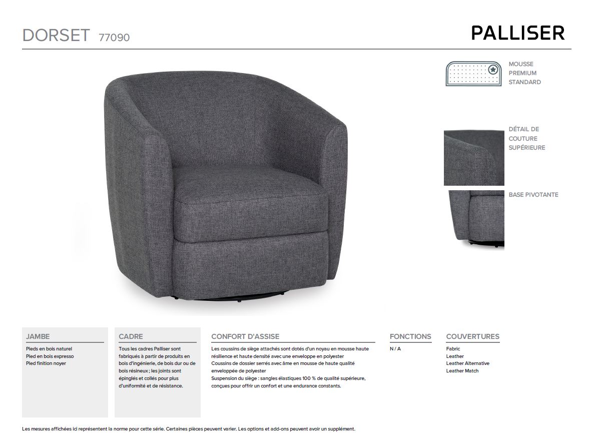 Avec son allure intemporelle, le Dorset s’intègre facilement à tous les décors. Il est offert avec une base fixe ou pivotante, selon vos préférences. Son dossier et son assise au rembourrage ferme, rehaussés de coutures verticales, apportent une touche de raffinement.