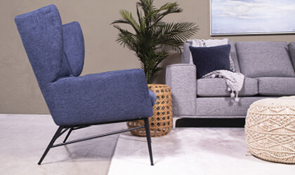 Ajoutez du style de votre décor avec ce fauteuil qui reflète votre bon goût … Son design du type bergère a oreilles contemporaines donnera un cachet de plus à votre demeure. Il gardera sa beauté au fil des années. Tissus bleus et base de métal noir.