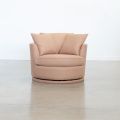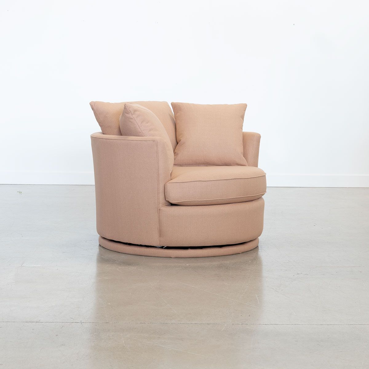 Complétez votre salon avec les courbes contemporaines de ce fauteuil lounge. Cette chaise pivotante invitante vous invite à retirer vos chaussures et à vous blottir. Un dos serré de baril complète le cercle avec un coussin de dos lâche et plusieurs oreillers surdimensionnés.