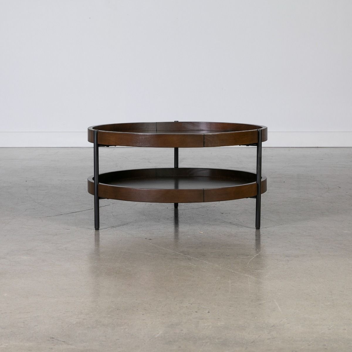 La table de centre Foresta marie à merveille chaleur naturelle et structure industrielle. Composée de deux plateaux en bois superposés, elle offre un espace fonctionnel et texturé, parfait pour les salons modernes ou rustiques.