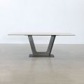 La table Amelia s’impose comme le point central d’un décor contemporain. Sa superbe base en métal de type piédestal crée une impression d’espace et de légèreté, tout en permettant d’ajouter des chaises sans l’encombrement des pattes traditionnelles. Qu’il s’agisse d’un souper intime ou d’un grand rassemblement, Amelia promet de rendre chaque moment à table aussi élégant que convivial.